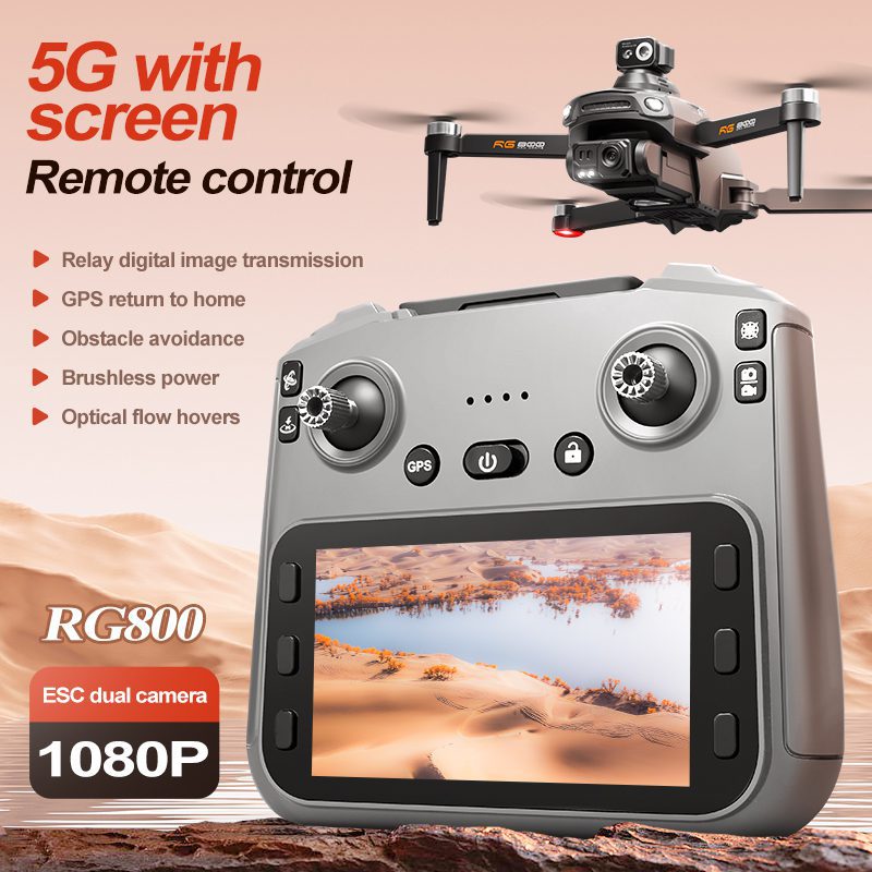 โดรน GPS RG800 ระดับมืออาชีพผสานกล้อง 8K HD พร้อมระบบกันสั่น EIS และการส่งสัญญาณแบบเรียลไทม์ผ่าน 5G Relay มอบความคมชัดระดับภาพยนตร์บนหน้าจอรีโมทขนาด 4.5 นิ้ว ใช้ระบบระบุตำแหน่งแบบคู่ GPS และออปติคอลโฟลว์ เพื่อความเสถียรที่มั่นคง พร้อมระบบหลีกเลี่ยงสิ่งกีดขวางด้วยเลเซอร์ 360° และฟังก์ชันกลับอัตโนมัติอัจฉริยะ เพื่อความปลอดภัยสูงสุด คุณสมบัติเช่นการติดตามอย่างชาญฉลาด, การปล่อย/ควบคุมด้วยฝ่ามือ, การถ่ายภาพด้วยท่าทาง, และการติดตามแผนที่แบบเรียลไทม์ ช่วยให้การบินเป็นไปอย่างสร้างสรรค์และง่ายดาย ออกแบบมาเพื่อการใช้งานที่ยาวนาน, มันผสานการถ่ายภาพระดับมืออาชีพกับการใช้งานที่แข็งแกร่งและเน้นผู้ใช้เป็นศูนย์กลาง.