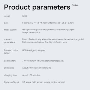 โดรน GPS S-X1 Professional ได้รับการออกแบบมาเพื่อการถ่ายภาพทางอากาศขั้นสูง มาพร้อมกับกิมบอล EIS 3 แกนที่มั่นคงเพื่อภาพ 4K ที่คมชัด ความสามารถที่โดดเด่นคือการส่งวิดีโอสดแบบซิงโครไนซ์ผ่านหน้าจอสามจอที่เชื่อมต่อกันผ่านเทคโนโลยี 5G ด้วยระยะการบินที่แข็งแกร่งถึง 5 กิโลเมตร โดรนนี้ใช้ระบบกำหนดตำแหน่งแบบคู่ GPS และโฟลว์ออปติคอลเพื่อการนำทางที่แม่นยำ ฟังก์ชันอัจฉริยะประกอบด้วยโหมดติดตาม โหมดล้อมรอบ และโหมดจุดสนใจ ในขณะที่ความปลอดภัยที่ครอบคลุมได้รับการรับรองด้วยการหลีกเลี่ยงสิ่งกีดขวางด้วยเลเซอร์และการกลับอัตโนมัติ (แบตเตอรี่ต่ำ/สัญญาณ/ระยะทาง) ระบบนี้มอบประสบการณ์การบินที่ร่วมมือกันและเป็นมืออาชีพสำหรับการใช้งานที่ต้องการสูง.